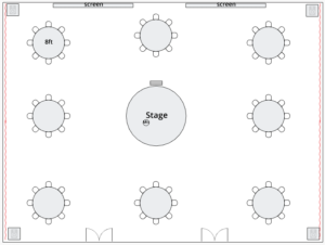 We’ve created 4 socially distant room layouts to let you easily plan where your guests will sit, where the stage will be placed and how the flow of the event will look like.