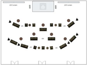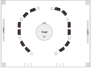 This style of seating first became popular for theaters in the late 1960s UK and Europe. It offers your guests a more intimate feel with your speaker and depending on your content, it may be the right move for your event.